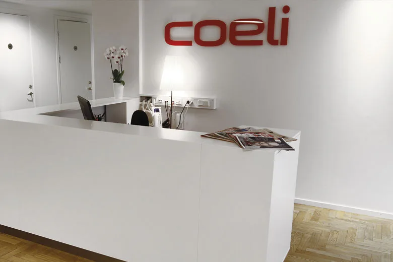 Det första du ser när du besöker ett företag är receptionen. Det är viktigt ör företag som tar emot sina klienter eller kunder att receptionen direkt visar vilken typa av företag man kommer till. I Coelis fall så ville man ha en avskalad receptionsdisk som ger ett elegant intryck. Det tillsamman med en ny logoskylt skulle lyfta hela intrycket av Coeli.
